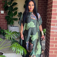 رداء فضفاض صيفي تقليد بالزهور الأفريقي الجديد ، بلوزة واقية من الشمس مع شال ساتان لي الديباج